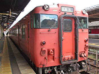 鳥取からは、「スーパーはくと8号」で京都に向かいます。「はまかぜ」のルートより早く、本数も多いので、便利です。智頭急行線内は非電化なので、こちらもディーゼル特急です。
