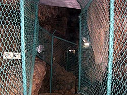 本殿裏手に、ポッカリと口を開ける鍾乳洞。