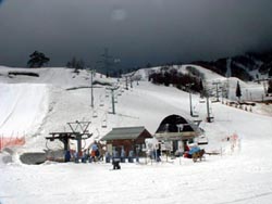 道の駅でトイレ休憩をして、スキー情報を確認すると、ハチ北で滑走可能は中央クワッドとパノラマペアのみ。これではつまらないと、思い切ってハチ高原に向かいました。ところがハチ高原はもっとひどく、中央トリプルのみ。それも一部、茶色くなってます。数日前に亡くなったいかりや長介よろしく「だめだこりゃ〜」と、一度はスキーをあきらめて帰りかけたのですが、せっかくここまで来て帰るのもシャクに障ると、もういちどハチ北に向かいました。こんなウロウロしたの初めてです。