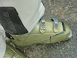 さて、ブーツを履こうとすると、何とブーツが割れてる!
