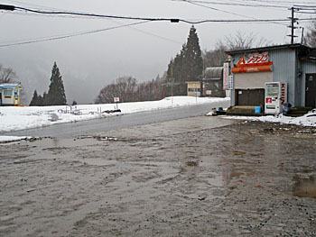 | 大久保登行リフト。駐車場は雨。 | がちがちに凍ったリフト |