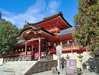 | 南総門(工事中) | 本殿の楼門(国宝) |