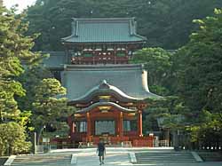 | 早朝の鎌倉駅。 | 鶴岡八幡宮。 |
