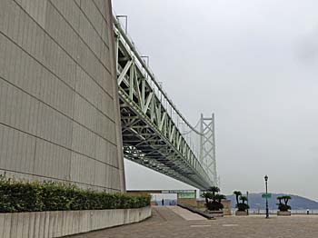 とある事情により、明石海峡大橋の主塔に登ってきました。天気が曇天だったのが残念ですが、晴天なら暑くて暑くて、すぐに降りたくなるそうです。そういう意味では、快適な空中散歩でした。ちなみに、「とある事情」自体には大反対です(分かる人にしか分からん?)。